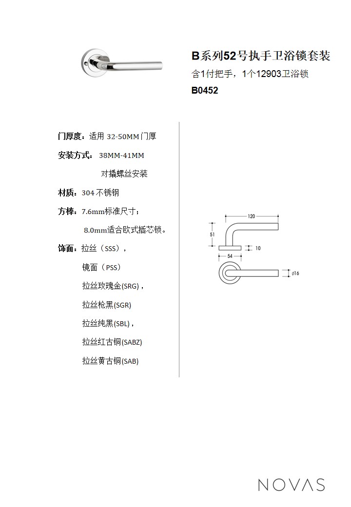 B係列52號執手衛浴鎖套裝(zhuāng)