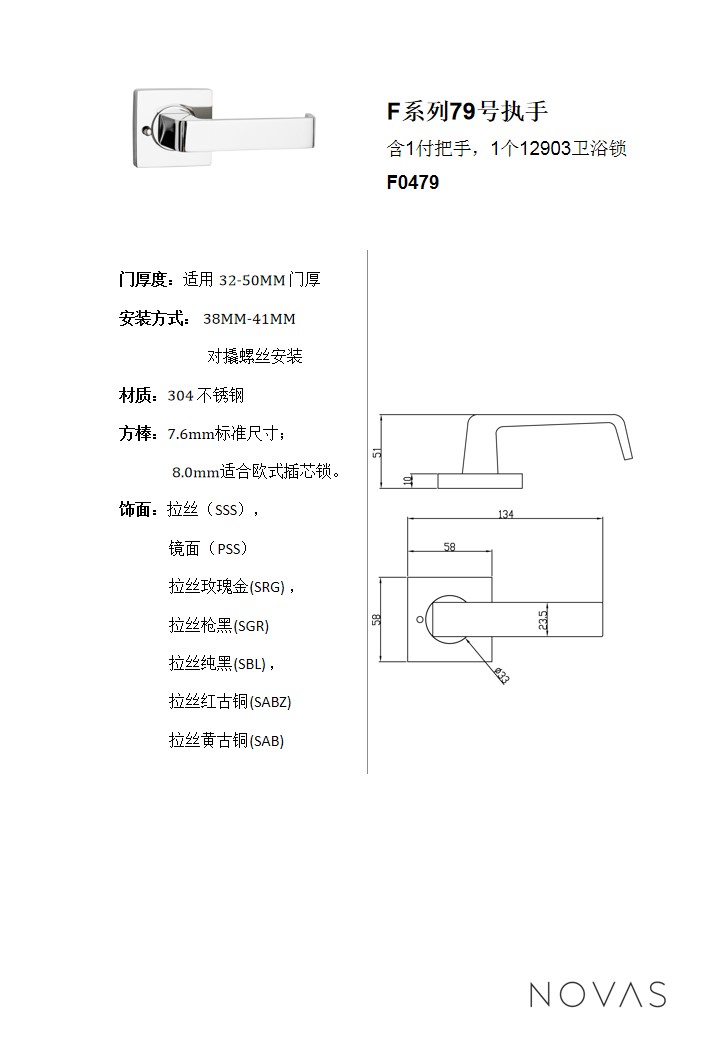 含1付把手(shǒu),1個12903衛浴鎖