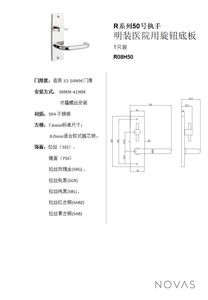 R係列50號執手明裝醫院用旋鈕底板