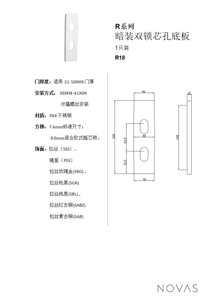 R係列暗裝雙鎖芯孔底板
