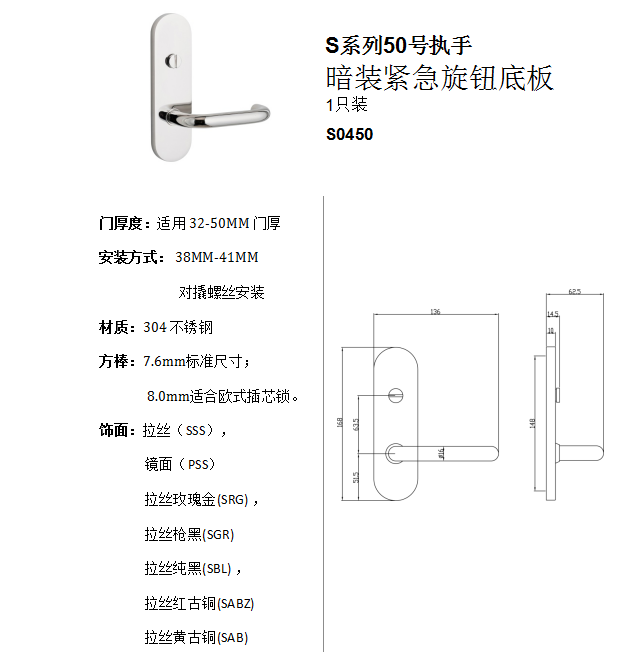 S係列50號執手(shǒu) 暗裝緊急旋鈕底板