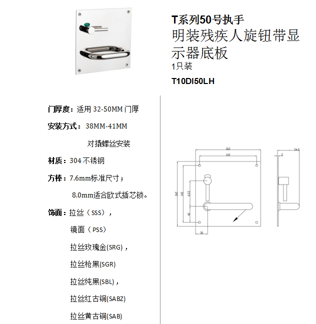 T係列50號執手 明裝殘疾(jí)人旋鈕帶顯示器底板