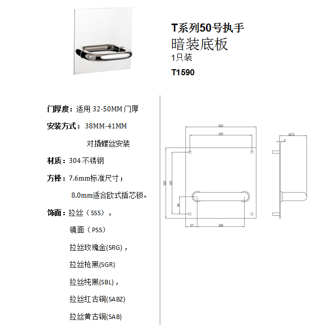 T係列50號執手 暗裝底板