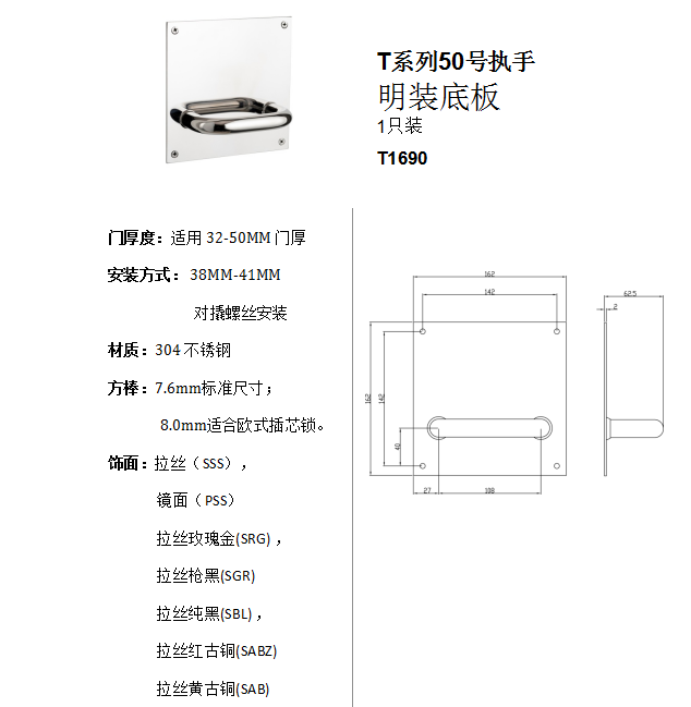 T係列50號執手 明裝底板