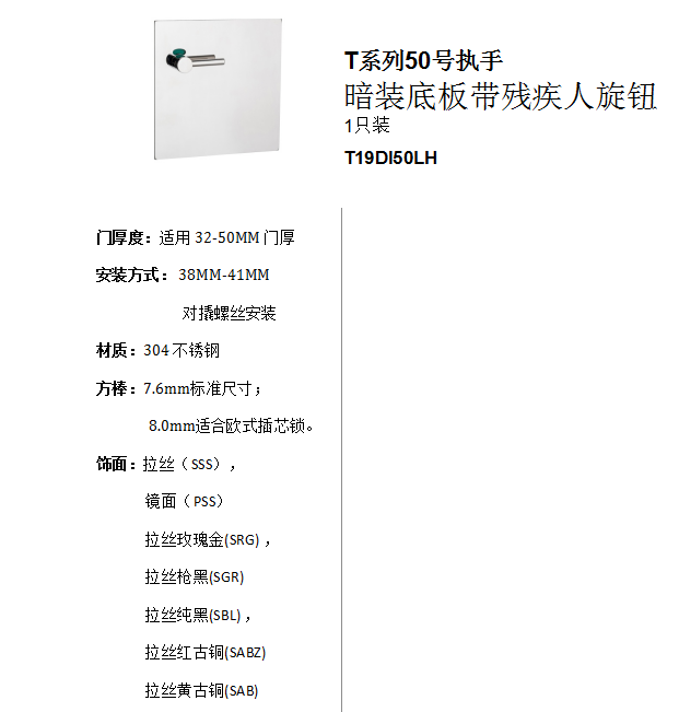 T係列50號執手 暗裝底(dǐ)板帶殘疾人旋鈕