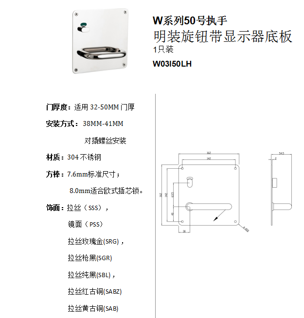 W係列50號執手 明裝旋鈕(niǔ)帶顯示器(qì)底板