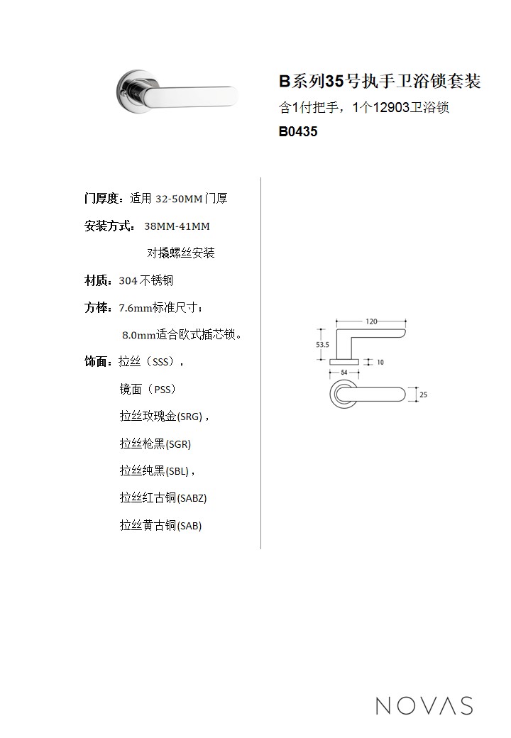 B係列35號執手衛浴鎖套裝